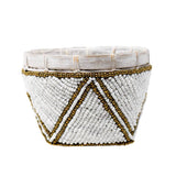• A beautiful hand beaded small basket perfect for storing jewelry or just adding texture to a counter top in your home.
