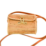This is the sweetest mini-straw bag to complete a summertime look! The delicate bow closure and the careful woven details make this a truly special bag.