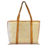 AMELIA CANE & LEATHER TOTE IN CAMEL: MEDIUM